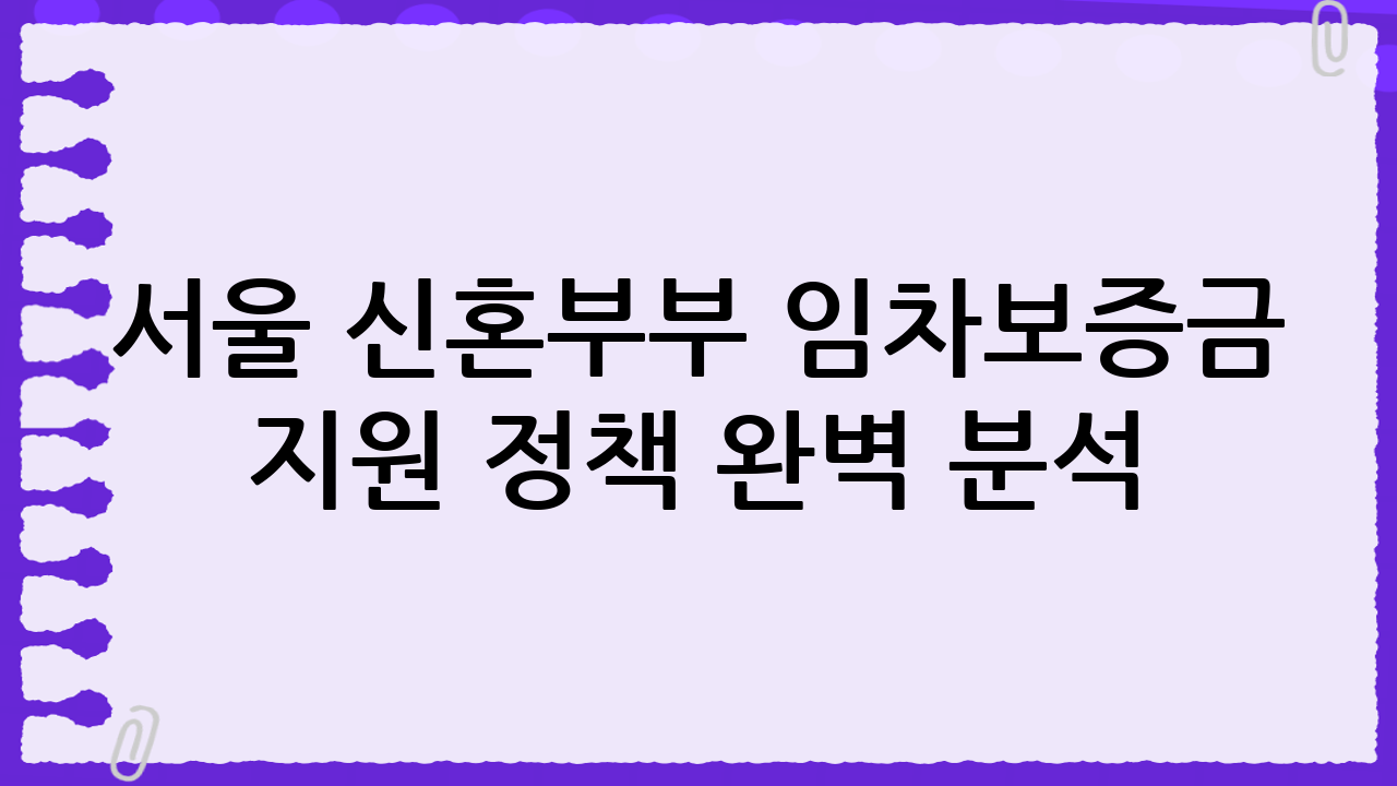 서울 신혼부부 임차보증금 지원 정책 완벽 분석: 내 집 마련의 꿈을 현실로!