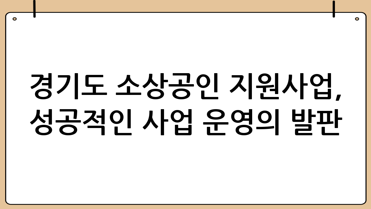 경기도 소상공인 지원사업, 성공적인 사업 운영의 발판