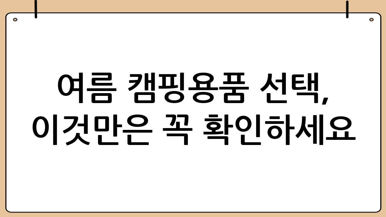 여름 캠핑용품 선택, 이것만은 꼭 확인하세요!