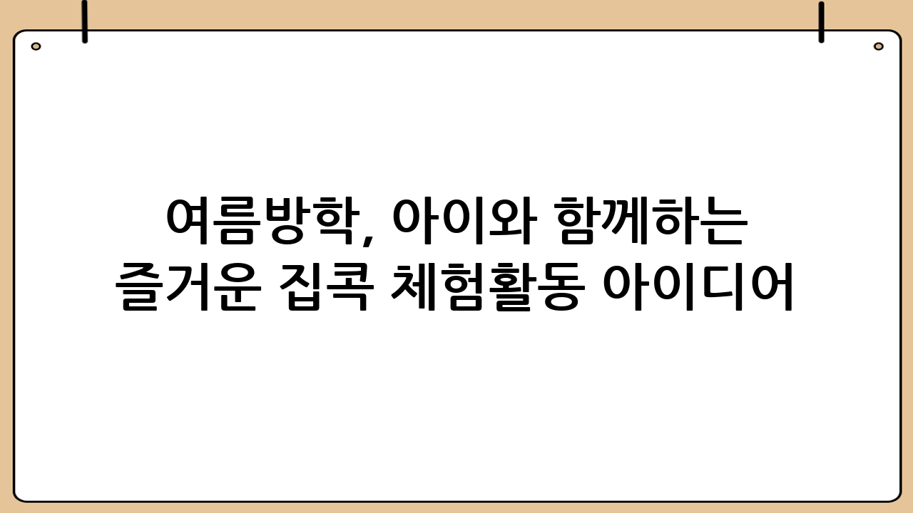 여름방학, 아이와 함께하는 즐거운 집콕 체험활동 아이디어!