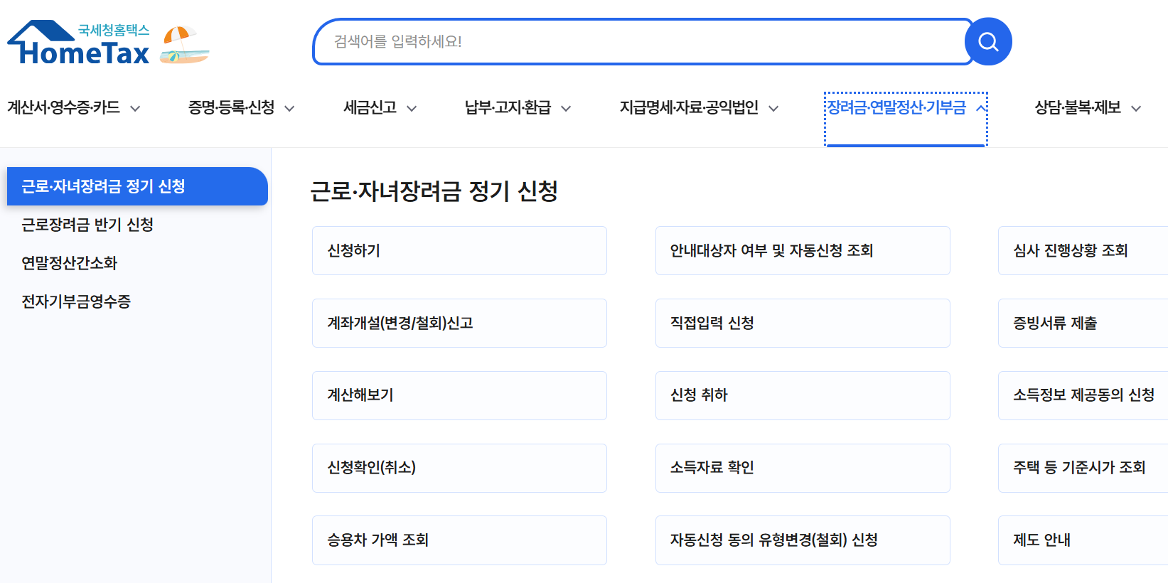 - 홈택스 접속 → [근로·자녀장려금] 메뉴